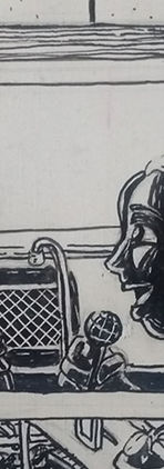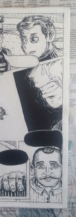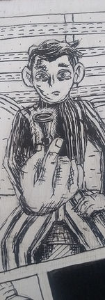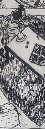 La pieza digital fue realizada con base en tres viñetas hechas en una página anterior de manera análoga, repitiendolas y variando secciones internas de dichas viñetas
